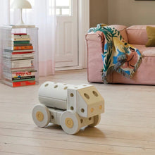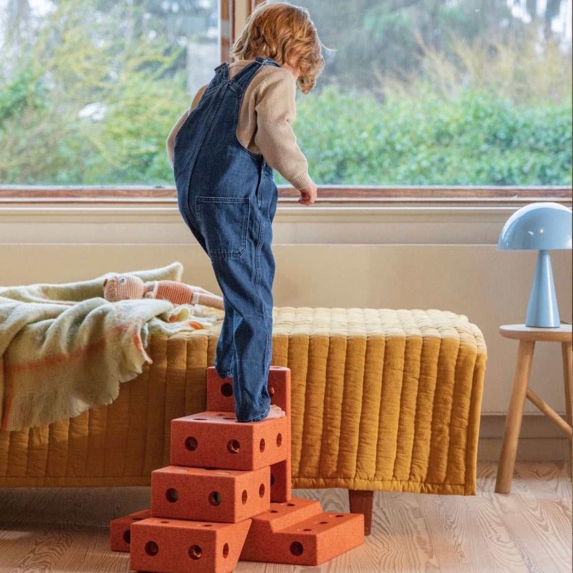Das Brixkids® Dreamer Set ist kompakt und modular, sodass Kinder selbst auf kleiner Fläche große Bauideen realisieren können.